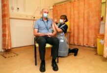 Andrew Pollard, director del grupo de vacunas de Oxford y profesor de infección e inmunidad pediátrica recibe la vacuna de la Universidad...